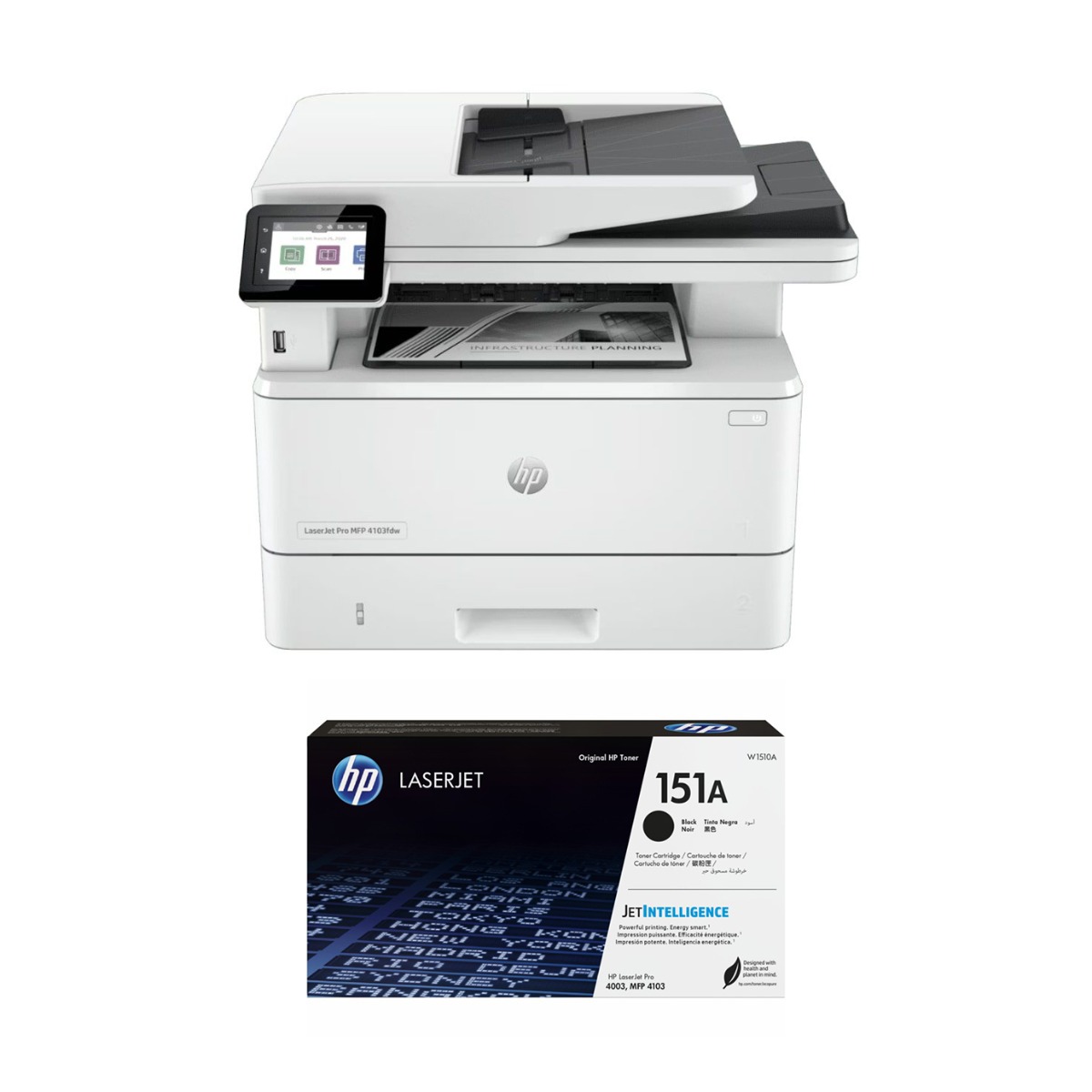 HP LaserJet Pro MFP 4103fdw Wired and Wireless Multi Functional Printer - 2Z629A with HP 151A Laser Toner Cartridge, Black - W1510A
